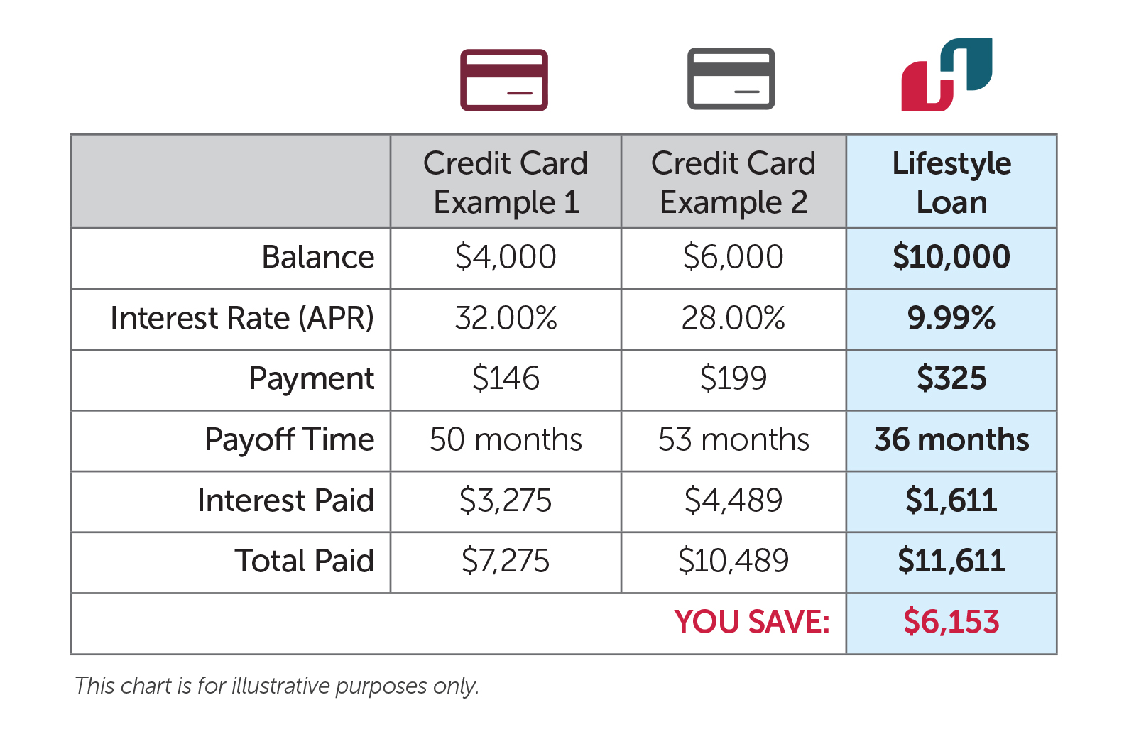 Credit cards often have high interest rates, making debt repayment costly. Homebase CU’s Lifestyle Loan may offer lower rates, helping you save on interest and pay off debt faster. - Simplify Payments